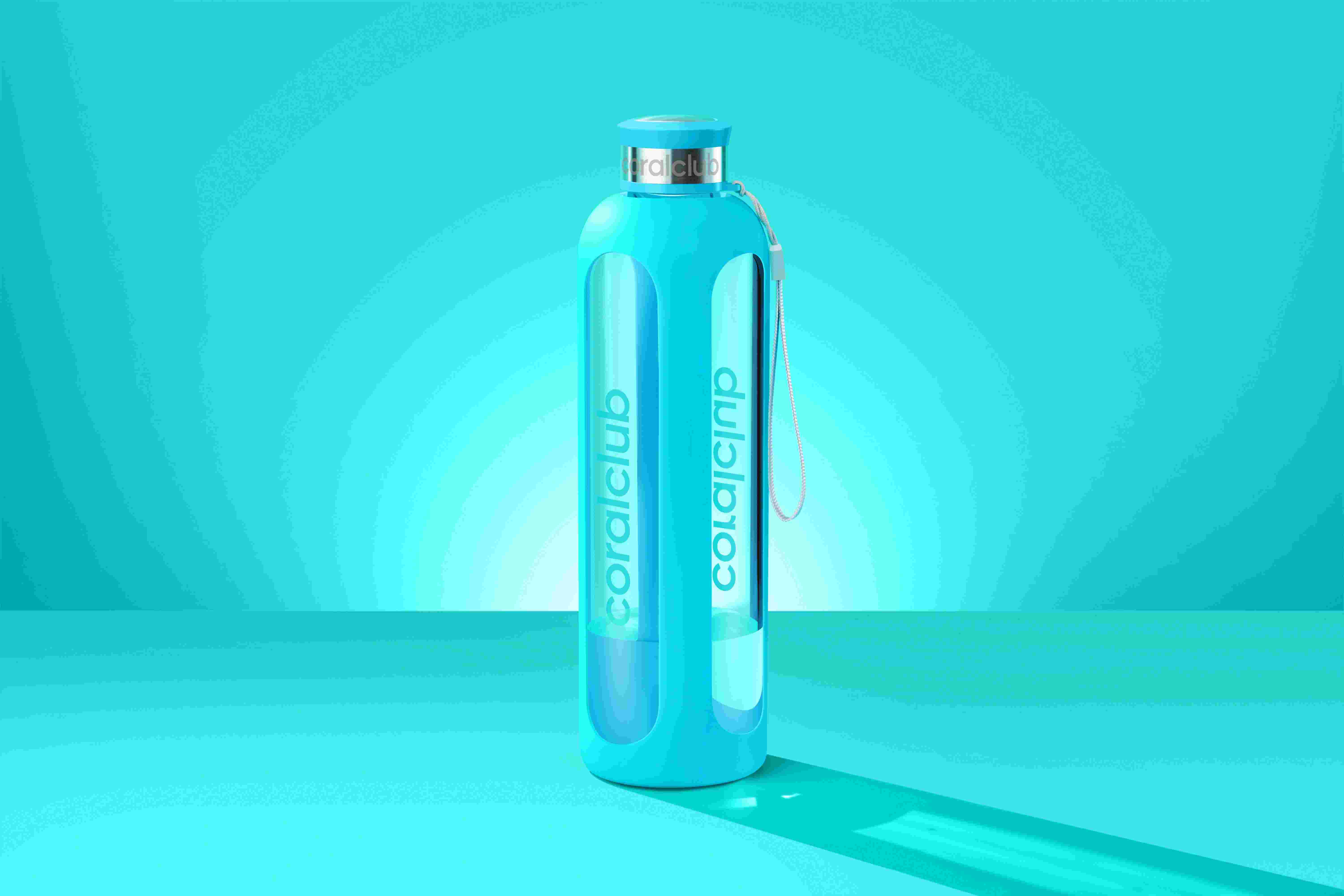 Стъклена бутилка "ClearWater", тюркоаз, 1000 мл